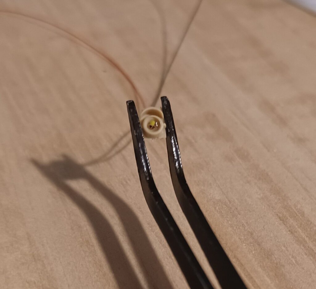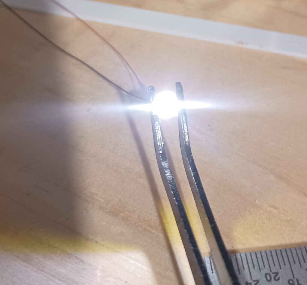 Enter the Surface Mount LED. Holy hell these are small. I got the warm white 0402 SMD, which have leads already attached. My eyes couldn’t handle trying to solder that. My eyes can barely handle ditch lights and grab irons.